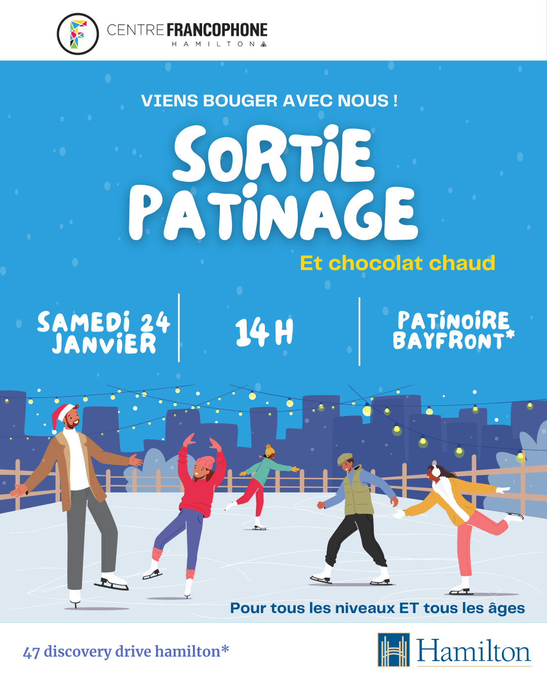 Venez glisser avec nous samedi 24 janvier 2026 à partir de 14h le temps d'une séance de patinage sur glace et partager un chocolat chaud entre francophones et francophiles!